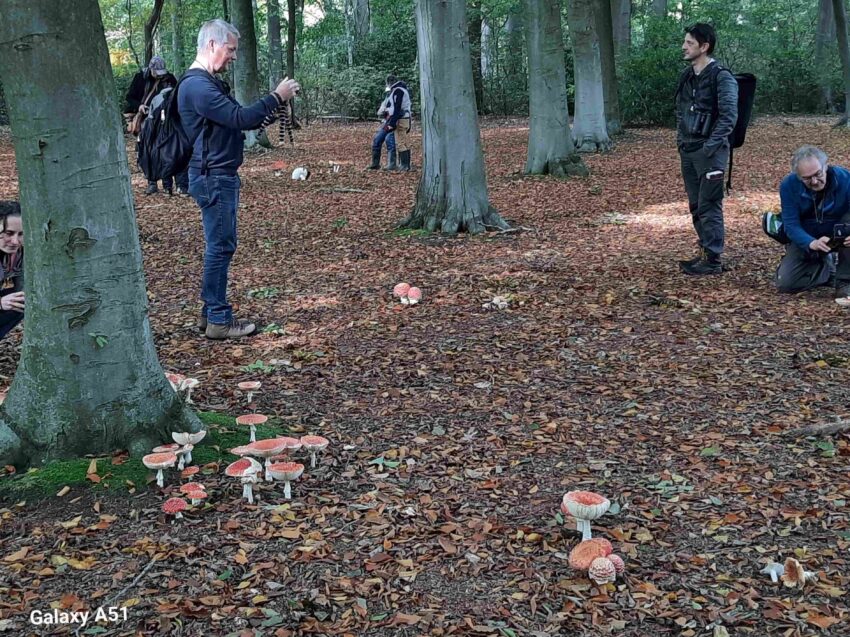 Vliegenzwam (Amanita muscaria) kreeg bijzondere aandacht tijdens de excursie. Ze was één van de meer dan 130 waargenomen soorten.Startcursus mycologische microscopie